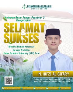 "Barakallahulakum! Selamat & Sukses atas pencapaian luar biasa Ananda M. HIFZI AL GIFARY." Keluarga Besar Ponpes Pagelaran 3 Cisalak-Subang turut bangga atas diterimanya Ananda sebagai Mahasiswa Jurusan Arsitektur di Gebze